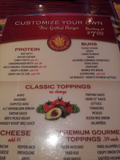 menu online. The milkshakes at this burger place are also terrific. It would be hard to finish a burger, fries, and a milkshake, though. In case the kid-friendly descriptor scares you off, they offer plenty of delicious mixed tropical drinks. I included a picture of the burger on a GF bun and steak fries, as well as a half-eaten burger so you can get an idea about the delightful texture of the GF bun. I have also included a updated version of their menu showing the GF bun or lettuce wrapped burger options, and their turkey club burger.